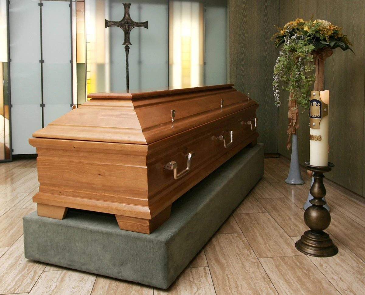 Der Sarg war zumeist aus schwarzem oder dunkelbraunem Holz, nur Kinder erhielten einen weißen Sarg. Er blieb offen, bis der Pfarrer den Segen erteilt hatte, damit jeder die Möglichkeit zum Abschied hatte. Beim Hinaustragen aus dem Haus musste darauf geachtet werden, dass der Tote mit den Füßen zuerst getragen wurde, um ihm die ewige Ruhe zu ermöglichen.