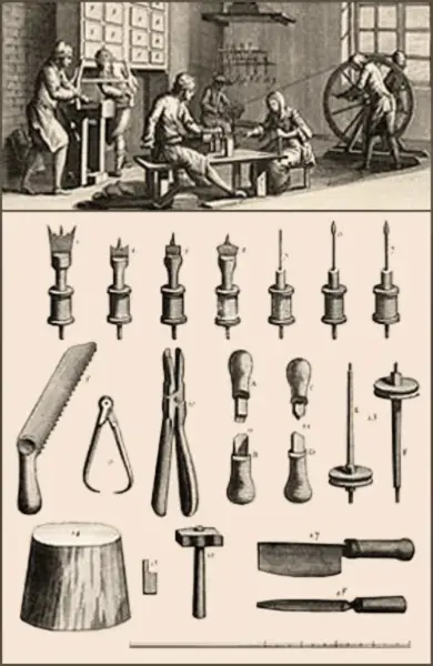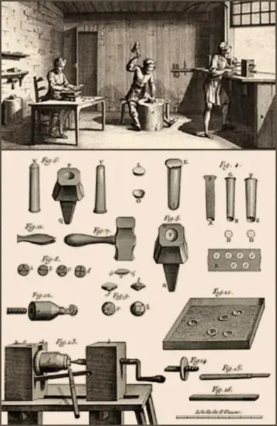 Obwohl seit etwa dem 13. Jahrhundert zuerst die Paternosterer (Petenmacher, Rosenkranzmacher) und Drechsler aus organischen Materialien wie Holz und Bein, später auch Gold- und Knopfschmiede, Rot-, Gelb- und Zinngießer sowie Gürtler aus Metallen und Legierungen, Knöpfe herstellten, bezieht sich die Berufsbezeichnung Knopfmacher (Knopf- und Schnurmacher, Knopf- und Crepinarbeiter) ausschließlich auf die Produzenten bestimmter textiler Knöpfe. Diese zählten zunächst zum breiten Arbeitsgebiet der Posamentierer. Doch seit dem 16. Jahrhundert spezialisierten sich zunehmend Meister auf die Herstellung von Knöpfen und konnten sich von den Posamentierern trennen und in eigenen Zünften organisieren. Neben den typischen Knöpfen und Verschnürungen stellten die Knopfmacher vor allem verschiedene Gürtel aus Schnüren, Quasten, Säbelgehänge und Gestecke für Kopfbedeckungen her. Die Knopfmacher produzierten neben dem namengebenden Produkt auch noch Gängelbänder, Schleifen, Quasten, Banderolen, Zweifelknöpfe, Kniegürtel etc.. Die hohen Preise der Ausgangsmaterialien z.B. Seide, Gold- und Silberdraht führten auch in diesem Handwerk in manchen Fällen zu verlagsähnlichen Abhängigkeiten. Andererseits führte der geringe Werkzeugbedarf auch zu einer großen Anzahl von außerzünftig tätigen Pfuschern, darunter Frauen und Soldaten, die meist nur das schon zu Schnüren verarbeitete Ausgangsmaterial verwendeten. Änderungen der Mode, die Verbreitung der Metallknöpfe, aber auch die Entstehung größerer Manufakturen führten bereits im 18. Jahrhundert zu einer merklichen Verschlechterung der wirtschaftlichen Lage.