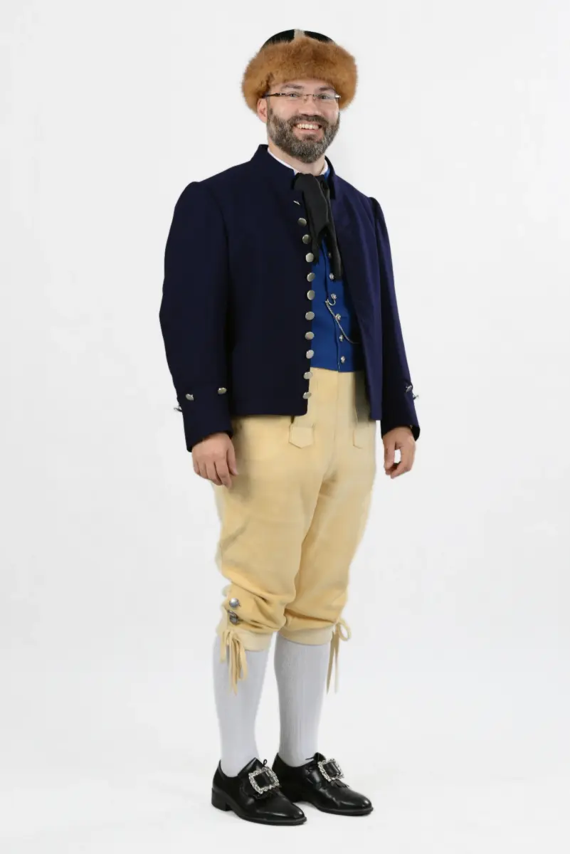 Zur guten oder gewöhnlich-guten Kleidung gehörten ursprünglich: ein weißes Leinenhemd, möglichst mit weiten Ärmeln, eine Weste aus blauem Tuch, die man auch Kamisol nannte, eine hirschlederne Kniebundhose ohne viel Zierrat, blaue Wollstrümpfe oder, an Festtagen, weiße Baumwollstrümpfe. Die Burschen trugen dazu einen aus dunkelblauem Tuch gefertigten Motzen und eine pelzverbrämte Kappe, deren Kappenboden mit einer Silberlitze in Kreuzform verziert war und auf dessen Mitte eine Quaste senkrecht nach oben stand. Die verheirateten Männer trugen statt der kurzen Jacke einen dunkelblauen Kirchenrock, der mit vielen blanken Metallknöpfen versehen war. Als Kopfbedeckung diente ein großer schwarzer Schaufelhut, dessen Krempe an der einen Seite ganz hochgeschlagen und auf der anderen Seite von zwei durch Löcher gezogenen Schnüren gehalten wurde. Für die Spinnstuben und Sonntage gab es auch eine einfachere Hauskappe, meist aus Samt oder Feinkrimmer mit Straminstickerei. Während der Arbeit trug man oft eine einfache Kappe aus Webpelz als Kopfbedeckung.