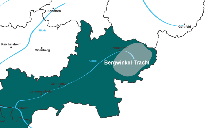 Der Bergwinkel liegt im oberen Kinzigtal, wo sich Spessart, Rhön und Vogelsberg treffen, mit den Städten Bad Soden-Salmünster, Steinau, Schlüchtern, der Gemeinde Sinntal und den drei heute zum Fuldischen gehörenden Dörfern Oberkalbach, Uttrichshausen und Heubach. Da die Tracht relativ früh abgelegt wurde, hat sich kein regionaler Name für sie herausgebildet. Erst um 1980 sprach man von der Bergwinkeltracht und für die Dörfer auf dem Landrücken, wie zum Beispiel Oberkalbach, von der Landrückentracht.