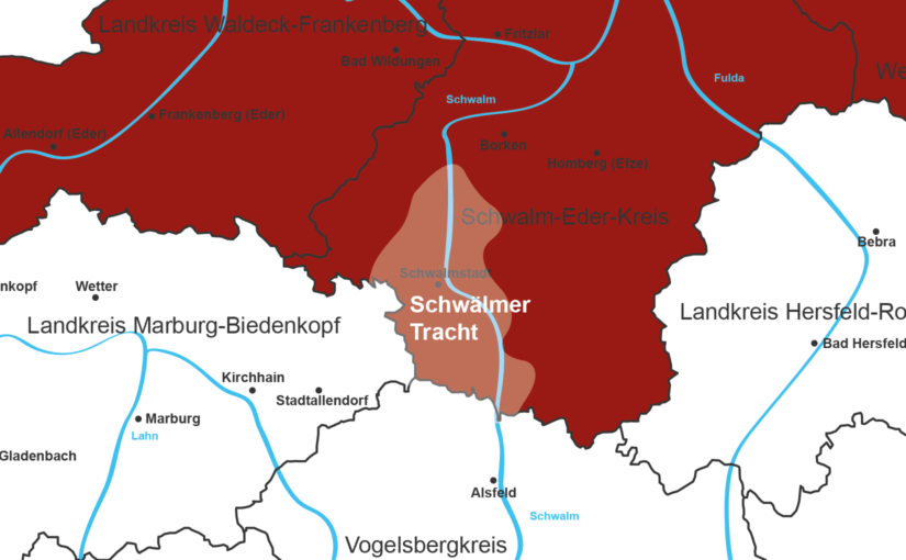 Die Schwalm, ein Landstrich eingebettet zwischen dem Vogelsberg im Süden, dem Kellerwald im Westen und dem Knüllgebirge im Osten, durchzogen von den Flüssen Fulda, Eder und Schwalm, zeichnet als deutlich begrenzter Kulturraum ab, das Gebiet der „Schwälmer“. Die-Schwalm umfasst etwa den Mittellauf des gleichnamigen Flüsschens, südlich begrenzt von Alsfeld und nördlich von Treysa. Im Osten zieht das Knüllgebirge eine scharfe Grenze, und im Westen stößt sie an das Marburger Trachtengebiet. Zum Gebiet der Schwalm gehören etwa 35 Dörfer und 3 Kleinstädte. Dies sind unter anderem: