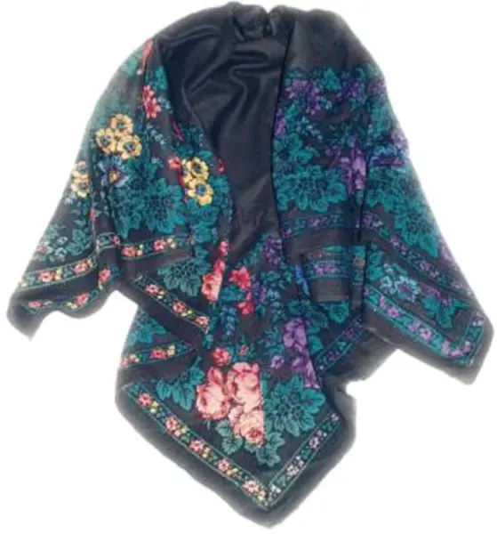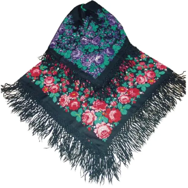 Diese bestehen aus quadratischen Tüchern aus feinem Wollmusseline. Auf schwarzem Grund sind breite Kanten mit aufgedruckten Rosen und Blättern in leuchtenden Farben. Besonders schöne Tücher haben in der Mitte noch einen Rosenstrauß und sind mit Ähren und Trauben reicher ausgestattet. Den äußeren Abschluss bilden seidene Fransen. Das „rote“ Rosentuch trug man zur Kirche und zu Familienfeiern und wurde nur von jungen Mädchen getragen. Die verheirateten Frauen trugen das „blaue“ Rosentuch, welches auch zur Trauer getragen wurde. Bei der sogenannten „harten Trauer“ von nächsten Blutsverwandten und zum Abendmahl musste man das schwarze, stumpfe Tuch aus Blockseide tragen. Neben den „Rosentüchern“ gab es einfache, aber farbenprächtige „Kranztücher“ aus Kattun. Material : Wollmusseline = feiner, weicher Wollstoff Kattun = feiner Leinenstoff. Der Grund der „Kranztücher“ war leuchtend rot, die breite Kante war mit Blumen abgegrenzt. Ferner schloss eine gelbe, lineare Kante das Tuch ab. Manche Tücher hatten auch zwei Kränze. Den Abschluss bildete bei den „Kranztüchern“ keine seidenen Fransen sondern ein schmaler Saum.