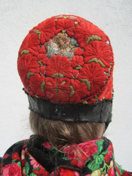 Aus Kattun waren die „Freud- und Leidtücher“, die auch als „braune Rosentücher“ bezeichnet wurden. Der Rosenkranz war hier auf einem tiefbraunen, fast schwarzem Grund. Eine Ecke mit zwei Kanten war mit blauen Rosen bedruckt und die gegenüberliegende Seite mit roten Rosen. Die blaue Seite trug man zur Trauer und rot zu sonstigen Anlässen. Natürlich nur die jungen, unverheirateten Mädchen. Die verheirateten Frauen trugen nur die blaue Seite nach außen.