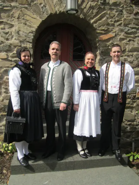 Ein weißes Hemd mit Biesen am Halsausschnitt und mit einem Querriegel, versehen mit roten Kreuzstichen, die Initialen des Trägers zeigen. Darüber reichlich bunt verzierte Hosenträger die an der langen schwarzen langen Wollstoffhose befestigt sind. Die Jacke (Wamst) ist handgestrickt und mit zwei Reihen Perlmuttknöpfen versehen. Am Rand wurde die Jacke mit Mäusezähnen verziert in grüner Wolle abgesetzt. Die mittlere Generation trägt eine graue und die ältere eine schwarze Jacke. Die Tracht ist vor 1900 erloschen.